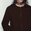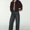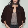 Round neck, long sleeve bomber jacket. Featuring elastic trims, front welt pockets and a front zip fastening.