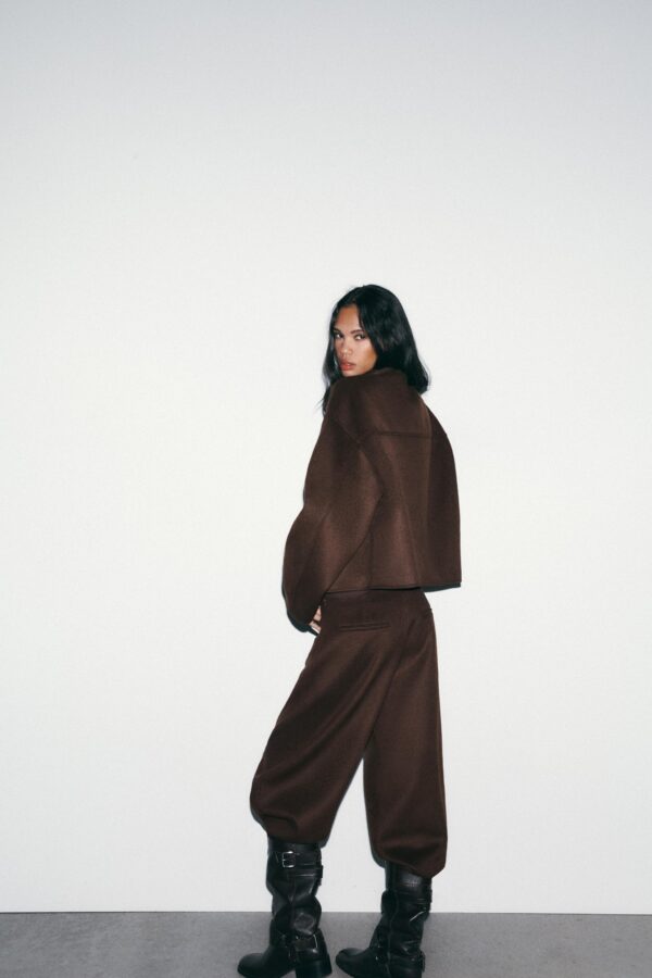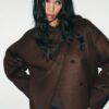 Jacket made from wool yarn. Featuring a high neck and long sleeve. Side in-seam pockets. Tonal lining. Crossover button-up front.
