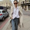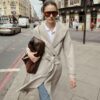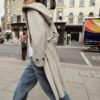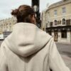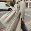 Hooded long sleeve coat featuring belt loops. Crafted from soft-touch fabric. Featuring side pockets, a self-tie belt in matching fabric and a front cross-over button fastening.