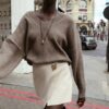 V-neck, long sleeve jumper. Ribbed trims.
