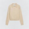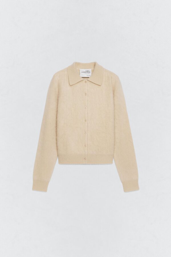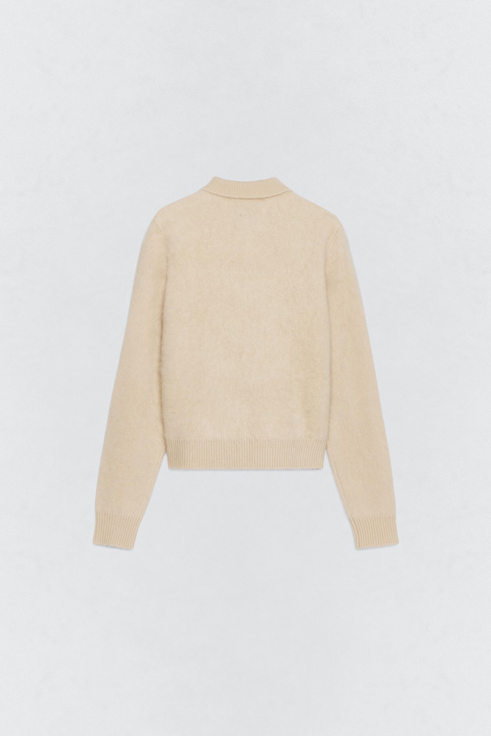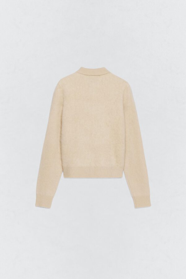 Jacket made of 100% spun wool. Featuring a polo collar and long sleeves. Tone-on-tone ribbed trims. Front button fastening.