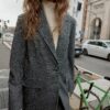 Comfort fit blazer featuring a lapel collar, long sleeves with shoulder pads, front flap pockets and front button fastening.