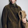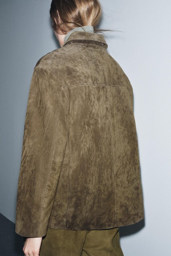 Jacket made from 100% suede leather. Lapel collar and long sleeves. Front patch pockets. Inner lining. Front button fastening.