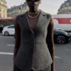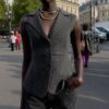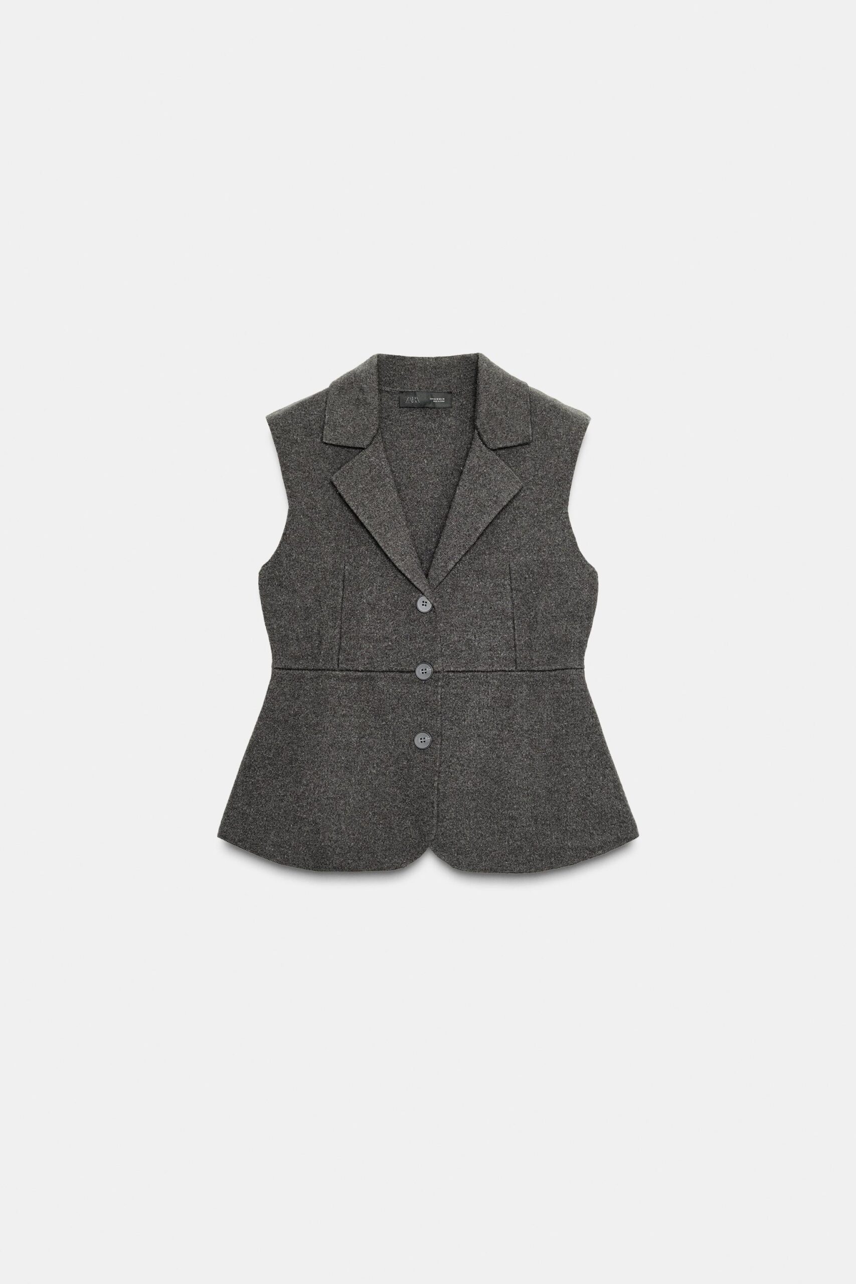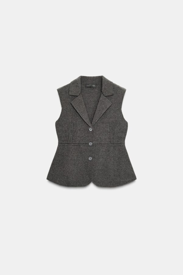Lapel collar waistcoat with a sleeveless design. Front button fastening.