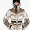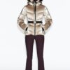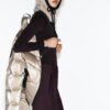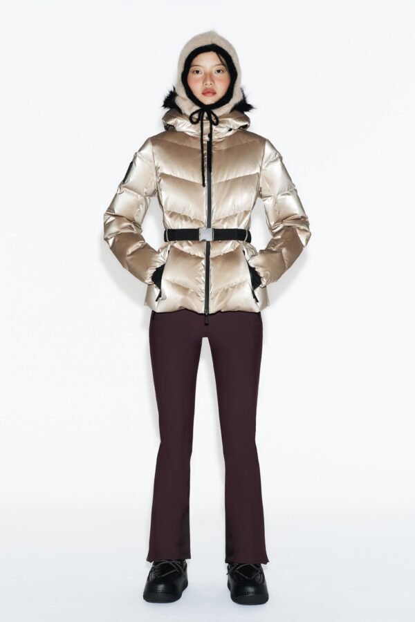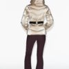 High collar with inner elastic strap to hold a scarf. Detachable and adjustable faux fur hood with elastic drawstrings. Long sleeves with ski pass pocket, finished with elastic cuffs with thumbholes. Adjustable ventilation in the armpits with a concealed zip.