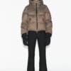 High neck with adjustable hood with elastic drawstrings. Long sleeves with ski pass pocket, finished with elasticated cuffs with thumbholes. Adjustable ventilation in the armpits with hidden zip. Front pockets with inner fleece lining and zip fastening. Inner pocket for mobile phone and inner mesh pocket for gloves with glasses cleaner. Hem finished with elastic and adjustable drawstrings. Removable inner powder skirt with zip and adjustable hem to prevent cold air from entering. Front fastening with double-slider zip with inner fleece-lined placket to protect the face.