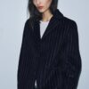 Blazer made from a wool blend yarn. Lapel collar and long sleeves. Front patch pockets. Front button fastening.