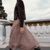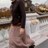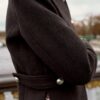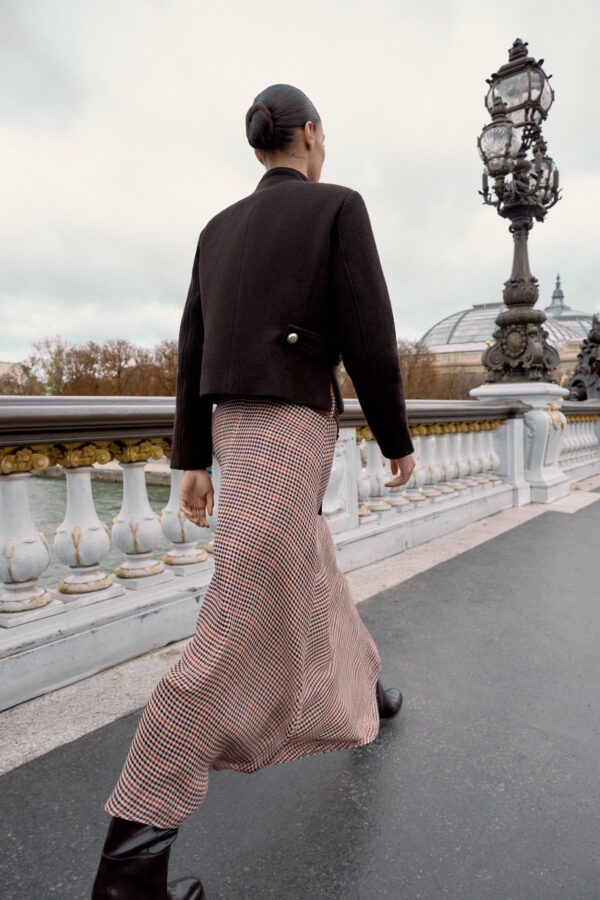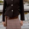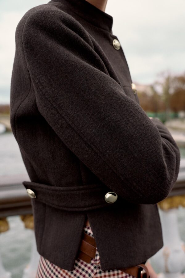 Jacket made of a wool blend. Featuring a high neck and long sleeve with shoulder pads. Side tab details with buttons and vents. Front fastening with gold-toned buttons.