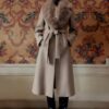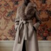 Wool coat. Featuring a collar with a detachable faux fur lapel. Long sleeves with shoulder pads. Front welt pockets. Hem with a vent at the back. Front button fastening and a belt in the same fabric.