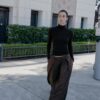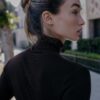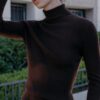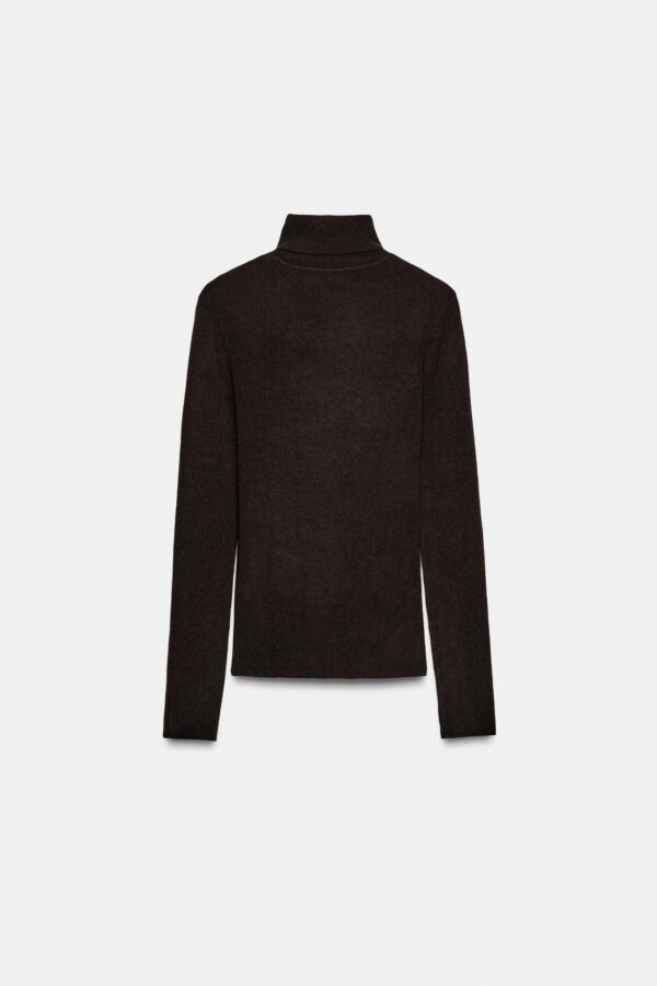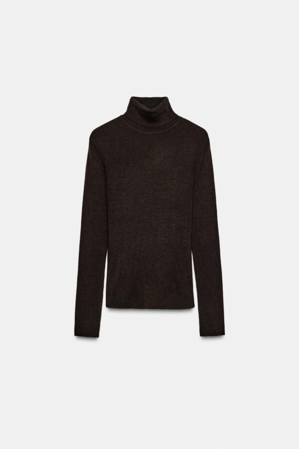 Fine knit jumper made of wool. Featuring a high neck and long sleeves.