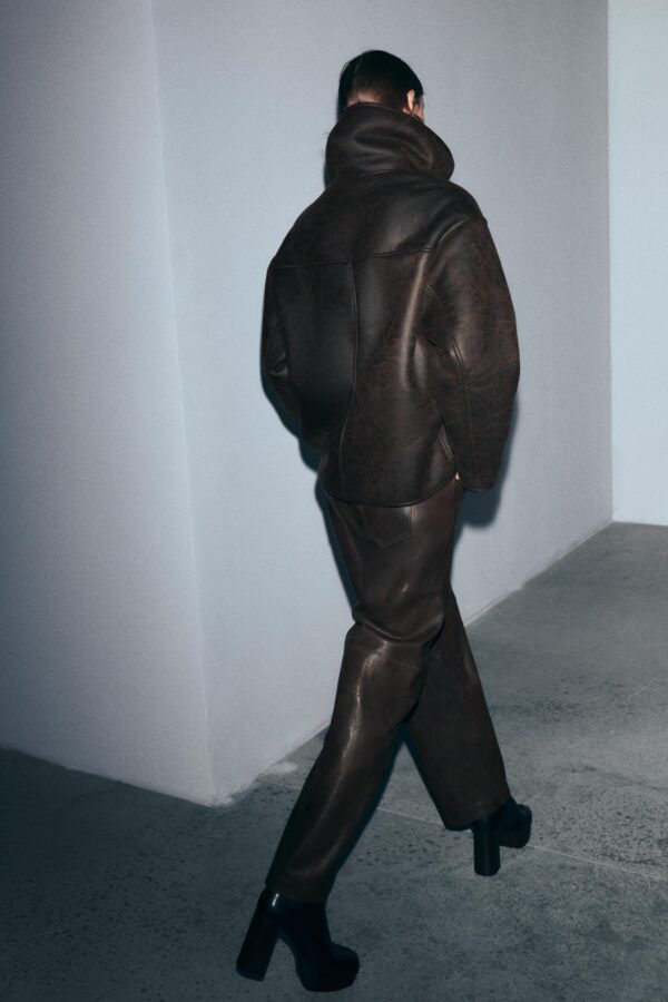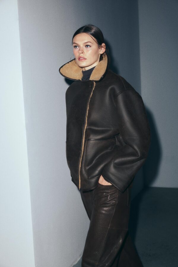 Jacket with a lapel collar and long sleeves. Patch pockets on the front. Faux shearling lining. Front button fastening.