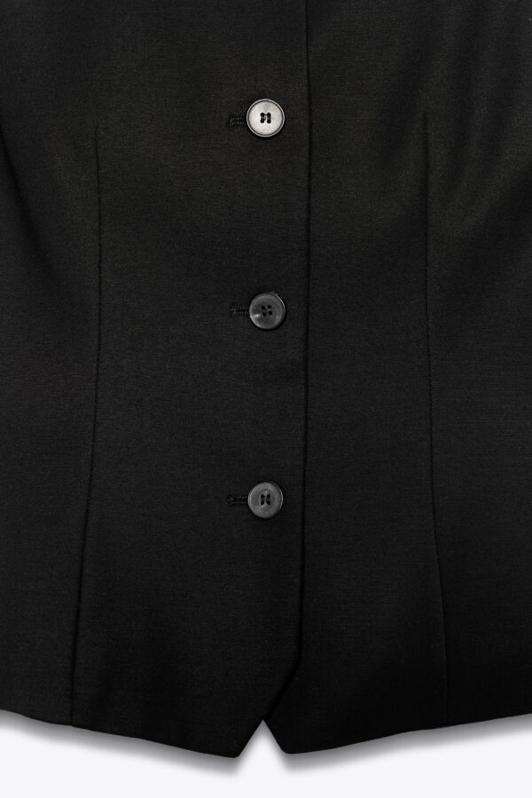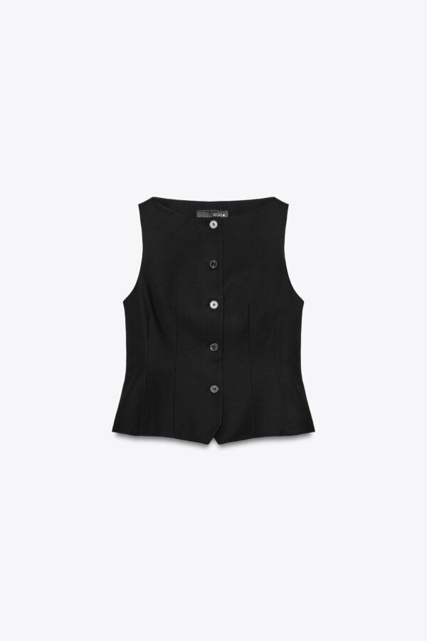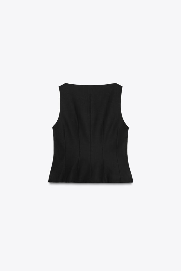 Waistcoat made of a cotton-blend knit. Featuring a round neck and sleeveless design. Peplum hem. Front button fastening.