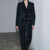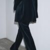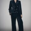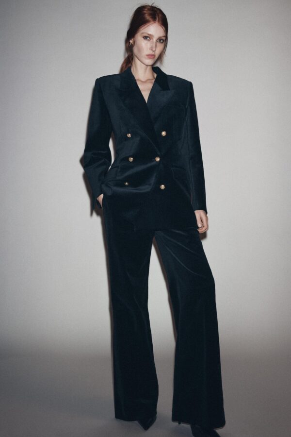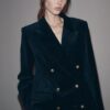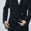 Velvet blazer. Notched lapel collar and long sleeves. Front flap pockets and a chest welt pocket. Double-breasted front fastening with embossed metal buttons.